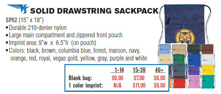 VS Solid Drawstring Sackpack / Shoe Bag